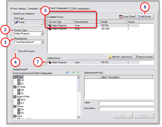 GlobalViewer Info sectionIn the lower right corner of the Driver Configuration tab is the GlobalViewer Info section. Here you can enter relevant information about the selected device that will appear on the Info tab of GlobalViewer (see below). To add information:
