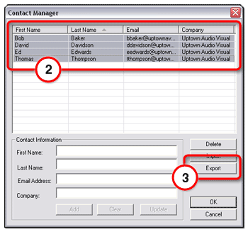 1. From the Edit menu, select Contact Manager.  The Contact Manager screen opens.