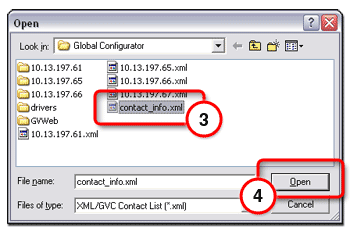 2. Click Open.  Contact information from the selected .xml file is loaded into the current GC file.