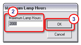 1. In the Maximum Lamp Hours field, enter the maximum number of lamp hours.