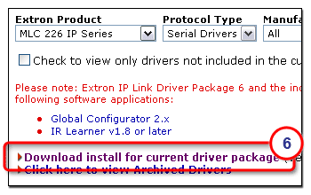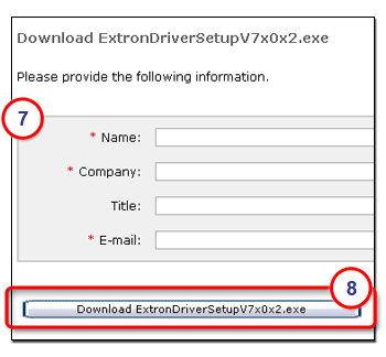 2. Click the Download ExtronDriverSetupVxxxxx.exe button.