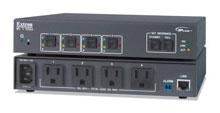 IPL T PCS4 (120 VAC)IPL T PCS4i (220 VAC)The IPL T PCS4 Series Four Port Power Control and Current Sensors offer centralized power management for up to four AC outlets. The IPL T PCS4 features four 120 VAC Edison outlets with a maximum 10 amp load, while an international version, the IPL T PCS4i, features four 220 VAC IEC power outlets, also with a maximum 10 amp load. Both models feature Extron IP Link technology, enabling flexible, centralized, web-based power management. The IPL T PCS4 Series allows administrators to remotely control individual outlets and assign outlets to groups for simultaneous control and monitoring of multiple outlets. Outlets can be turned on or off manually or scheduled for automatic operation. For event logging and record keeping, the IPL T PCS4 can be programmed to send out an e-mail notification as each scheduled on/off event is performed. The IPL T PCS4 Series also features intelligent current