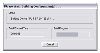 Please Wait. Building Configuration(s)...When you select Build Changed Configurations, a Please Wait. Building Configuration(s)... dialog box containing an activity bar is displayed while the build process completes. |